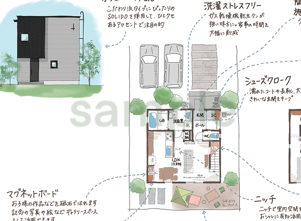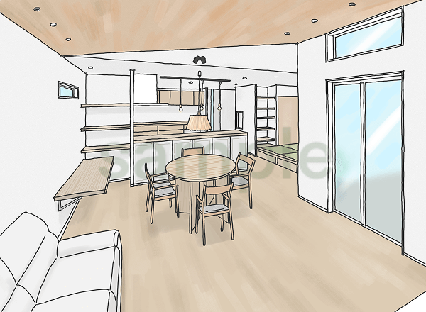 平面図や立面図だけでは伝わりにくい「空間のイメージ」や「暮らしの雰囲気」を、イラストでわかりやすく表現いたします。